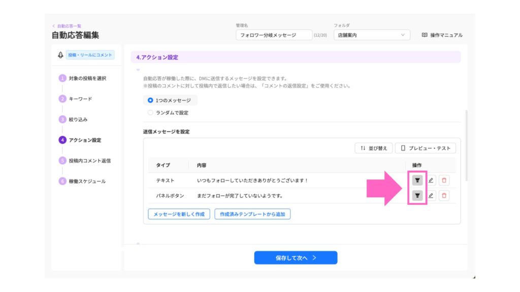 今回のアップデートでは、エルグラムの「自動応答」機能において、送信メッセージごとの絞り込みができるようになりました。これにより、1つの自動応答設定の中で条件に応じた複数のメッセージを出し分けることが可能になり、状況に合わせた柔軟な対応が行えます。