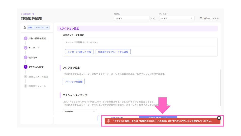 自動応答を稼働させるために必要な設定内容や、エラー発生時の表示も見直されました。従来よりもシンプルな表現に整理され、初めてご利用いただく方でも迷わず操作できるようになっています。また、エラーが発生した際にも原因が把握しやすくなっており、スムーズに解決へ進めることが可能となりました。