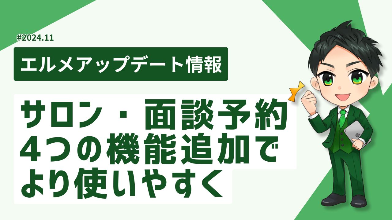 株式会社ミショナ(代表:鈴木隆宏)は、2024年11月13日(水)実施のアップデートにより、「L Message(エルメ)」のサロン・面談予約の機能を改善いたしました。