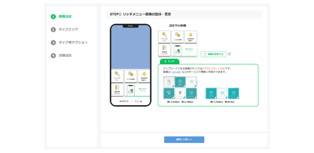今回のアップデートでは、リッチメニューの操作画面が大きく改善されました。これにより、操作がステップごとに分けられ、初心者でもスムーズにリッチメニューを作成できるようになります。