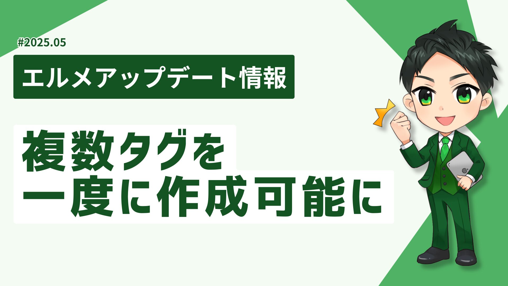 アップデートにより、タグの一括作成機能を新たに実装し、最大20個のタグを同時に作成できるようになりました。