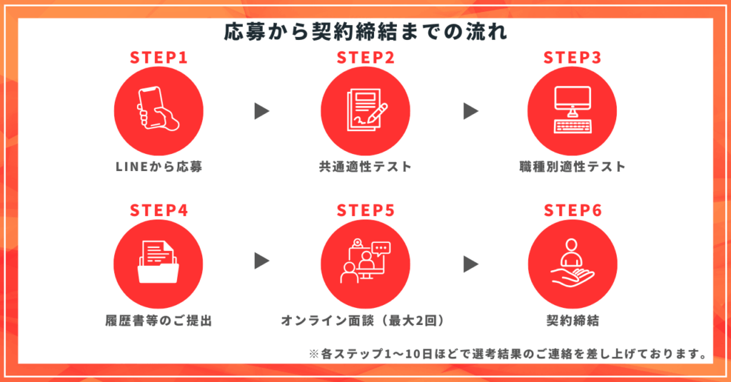 応募を検討されている方や、選考の流れが気になる方にとって、具体的なイメージを掴んでいただけたのではないでしょうか?